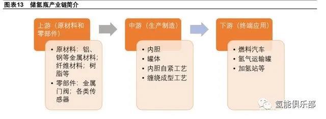 儲氫瓶產(chǎn)業(yè)鏈可以簡單劃分為上游原材料和零部件,中游生產(chǎn)制造和下游終端應(yīng)用三個環(huán)節(jié)。其中,上游原材料包括鋁材、 鋼材、碳纖維和樹脂等,零部件包括各種金屬閥門和各類傳感器;中游生產(chǎn)制造設(shè)備和制造工藝等;下游則是在燃料汽車、 氫氣運輸罐、加氫站等場景上的應(yīng)用。在產(chǎn)業(yè)鏈供應(yīng)方面,目前車載儲氫瓶核心材料及零部件如碳纖維主要依賴進口,瓶口 閥、減壓閥等也主要依賴進口,未來這些關(guān)鍵材料和零部件將逐步實現(xiàn)國產(chǎn)化。