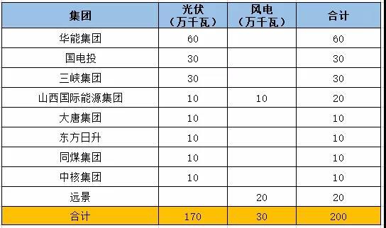 大唐、東方日升、同煤集團(tuán)、中核集團(tuán)各獲得10萬(wàn)千瓦光伏項(xiàng)目。
