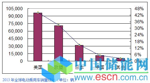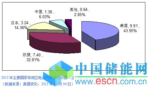 中國儲(chǔ)能網(wǎng)訊:真鋰研究的監(jiān)測數(shù)據(jù)顯示,2013年全球電動(dòng)汽車銷量共計(jì)22.55萬輛左右,較2012年的12.96萬輛增長了73.95%。全球的電動(dòng)汽車市場基本上集中在美國、歐盟、日本和中國,份額分別為43.95%、32.81%、14.36%和6.03%;其他國家和地區(qū)很少,合計(jì)市場份額不到3%。