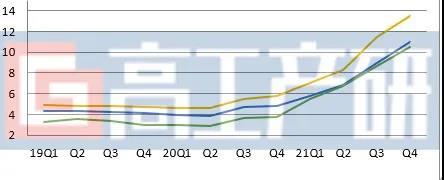 2019-2021Q4中國(guó)電解液季度均價(jià)(萬元/噸)