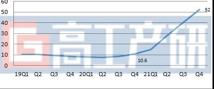 2019-2021Q4中國(guó)六氟磷酸鋰季度均價(jià)(萬元/噸)