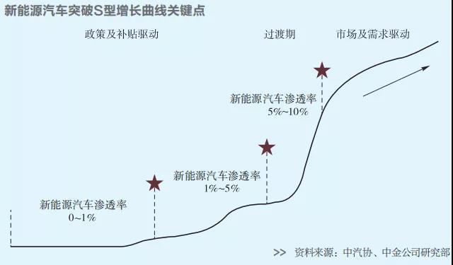 談到增長(zhǎng),往往離不開(kāi)S型曲線。十九世紀(jì)末,法國(guó)社會(huì)學(xué)家塔爾德觀察到,一個(gè)新思想的采納率在時(shí)間中遵循一種S型曲線,即開(kāi)始時(shí)緩慢、中期加快、后期平緩。S型曲線逐漸廣泛應(yīng)用于社會(huì)學(xué)、生物統(tǒng)計(jì)學(xué)、臨床、數(shù)量心理學(xué)、市場(chǎng)營(yíng)銷等多個(gè)領(lǐng)域。汽車行業(yè)普遍認(rèn)為,全球的汽車電動(dòng)化已經(jīng)突破臨界點(diǎn),進(jìn)入了S型曲線的陡峭增長(zhǎng)期,將呈現(xiàn)爆發(fā)趨勢(shì),2022年的新車滲透率將突破20%??紤]到2021年新能源汽車受到了電池供應(yīng)受限、芯片供應(yīng)短缺以及產(chǎn)能受限等因素影響,而2022年這些因素將逐漸緩解,我國(guó)新能源汽車銷量預(yù)計(jì)為500萬(wàn)~600萬(wàn)輛。