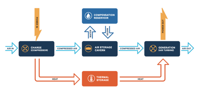 其壓縮空氣系統(tǒng)采用非峰期間的電力壓縮空氣,并儲(chǔ)存在等壓的地下洞穴中。在壓縮空氣時(shí),還可以將壓縮過程產(chǎn)生的熱量存儲(chǔ)在絕熱的熱管理系統(tǒng)中。Hydrostor公司表示,,這種熱能的使用是A-CAES儲(chǔ)能項(xiàng)目中“A”的一部分,與其他壓縮空氣技術(shù)相比,它具有更高效率。該公司運(yùn)營的安大略A-CAES項(xiàng)目服務(wù)于多種應(yīng)用,其中包括提供峰值容量和輔助服務(wù)。