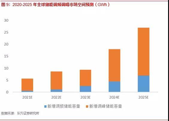 根據(jù)我們的測算,全球2025年電網(wǎng)側(cè)調(diào)頻需求帶動的儲能需求為6.9GWh,復合增長率達65.7%,電網(wǎng)側(cè)調(diào)峰需求產(chǎn)生的儲能需求為20GWh,復合增長率達31.3%。