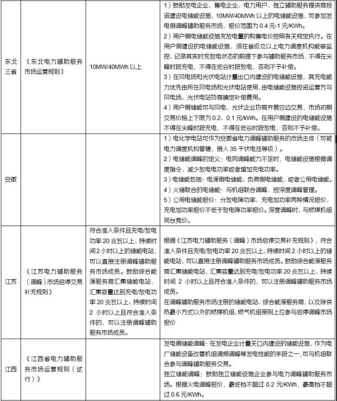 新型儲能市場地位進一步明確。2021年,根據(jù)新版“兩個細則”的規(guī)定,電力輔助服務提供主體包括火電、水電、核電、風電、光伏發(fā)電、抽水蓄能、新型儲能等以及能夠響應調(diào)度指令的用戶可調(diào)節(jié)負荷(包括通過聚合商、虛擬電廠等形式聚合的可調(diào)節(jié)負荷)等并網(wǎng)主體。新型儲能和能夠響應調(diào)度指令的用戶可調(diào)節(jié)負荷被作為市場主體列入政策,政策積極推進新型儲能、用戶可調(diào)節(jié)負荷、聚合商、虛擬電廠等資源參與電力輔助服務。