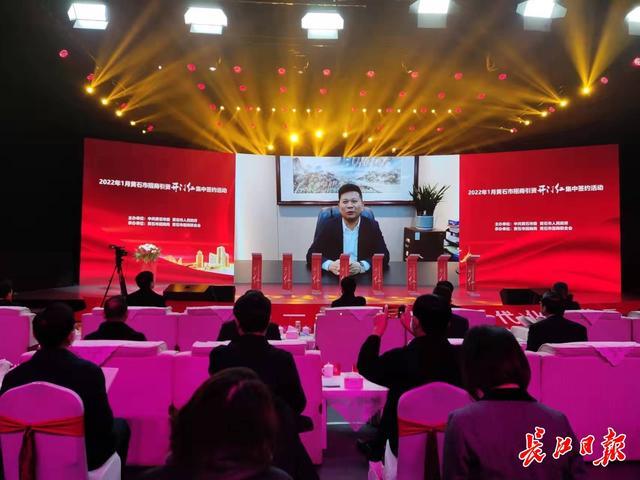 諾德投資股份有限公司董事長陳立志在2022年1月黃石市招商引資開門紅集中簽約活動(dòng)上作視頻發(fā)言。長江日?qǐng)?bào)記者高喜明 攝