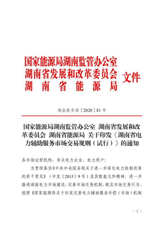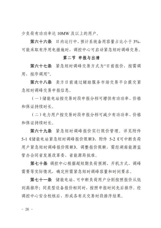 中國儲能網(wǎng)訊:湖南能監(jiān)辦日前發(fā)布了《湖南省電力輔助服務(wù)市場交易規(guī)則(試行)的通知》,2020年11月起,湖南省電力輔助服務(wù)市場開始試運營。電力輔助服務(wù)市場交易包含深度調(diào)峰交易、啟停調(diào)峰交易、旋轉(zhuǎn)備用交易和緊急短時調(diào)峰交易等交易品種。