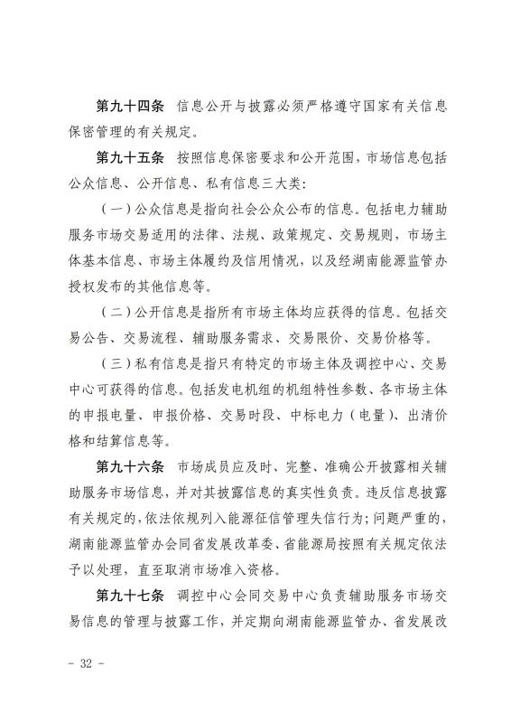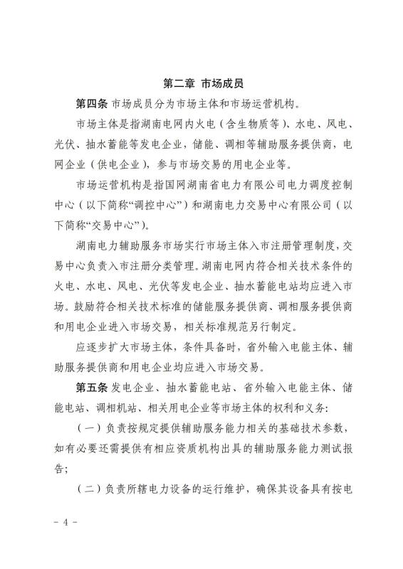 湖南電力輔助服務(wù)市場實行市場主體入市注冊管理制度,交易中心負責(zé)入市注冊分類管理。湖南電網(wǎng)內(nèi)符合相關(guān)技術(shù)條件的火電、水電、風(fēng)電、光伏等發(fā)電企業(yè)、抽水蓄能電站均應(yīng)進入市場。 鼓勵符合相關(guān)技術(shù)標(biāo)準(zhǔn)的儲能服務(wù)提供商、調(diào)相服務(wù)提供商和用電企業(yè)進入市場交易,相關(guān)標(biāo)準(zhǔn)規(guī)范另行制定。
