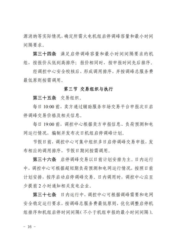 啟停調(diào)峰交易方式為“日前報價,按需調(diào)用,按序調(diào)用”。啟停調(diào)峰交易報價實行限價管理。