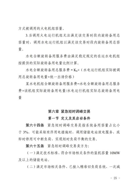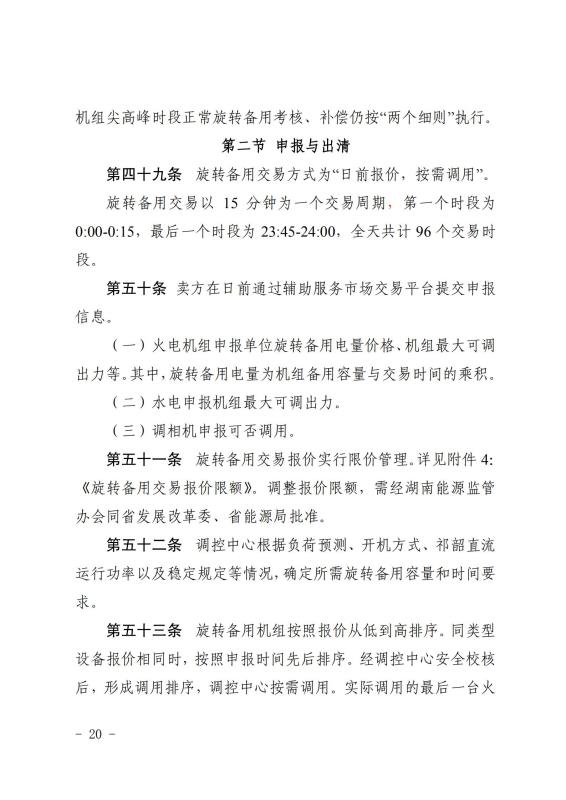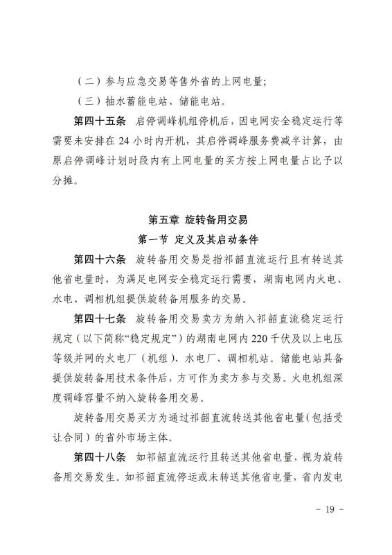 旋轉(zhuǎn)備用交易賣方為納入祁韶直流穩(wěn)定運行規(guī)定(以下簡稱“穩(wěn)定規(guī)定”)的湖南電網(wǎng)內(nèi) 220 千伏及以上電壓等級并網(wǎng)的火電廠(機組)、水電廠、調(diào)相機站。儲能電站具備提供旋轉(zhuǎn)備用技術(shù)條件后,方可作為賣方參與交易。火電機組深度調(diào)峰容量不納入旋轉(zhuǎn)備用交易。