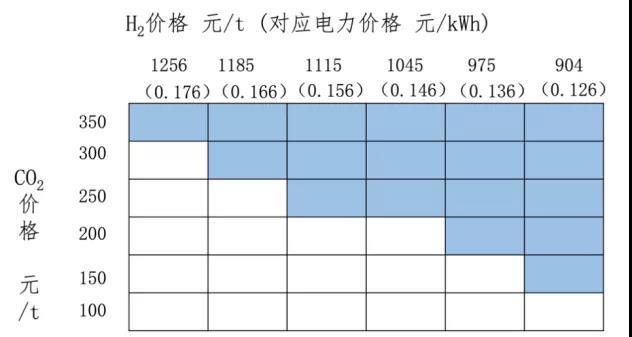 圖表9 氫冶金的競爭性成本優(yōu)勢分析(僅考慮H2和CO2價格)