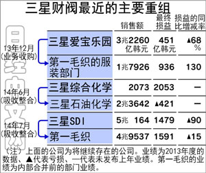 三星加速重組的原因是集團(tuán)業(yè)績(jī)快速惡化。據(jù)韓國(guó)公正交易委員會(huì)統(tǒng)計(jì),13年度三星財(cái)閥整體的純利潤(rùn)為24萬(wàn)億韓元,比上一年度減少了18%。