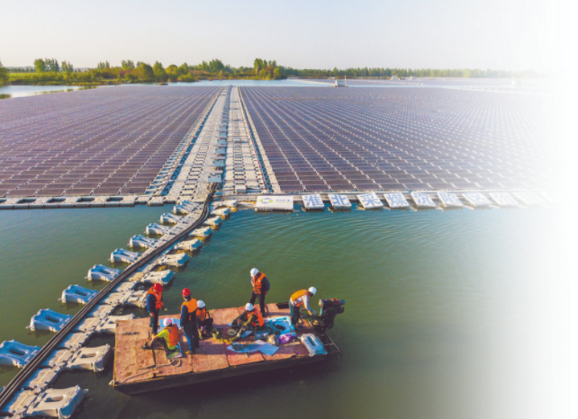 “我們租了村民已沉陷成湖的土地,在湖面上建設光伏發(fā)電站,村民不僅可以收租金,還能繼續(xù)在光伏板下的湖水里養(yǎng)魚。”信隋光伏電站負責人侯將介紹。