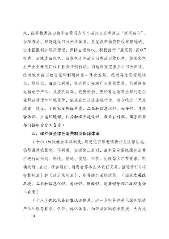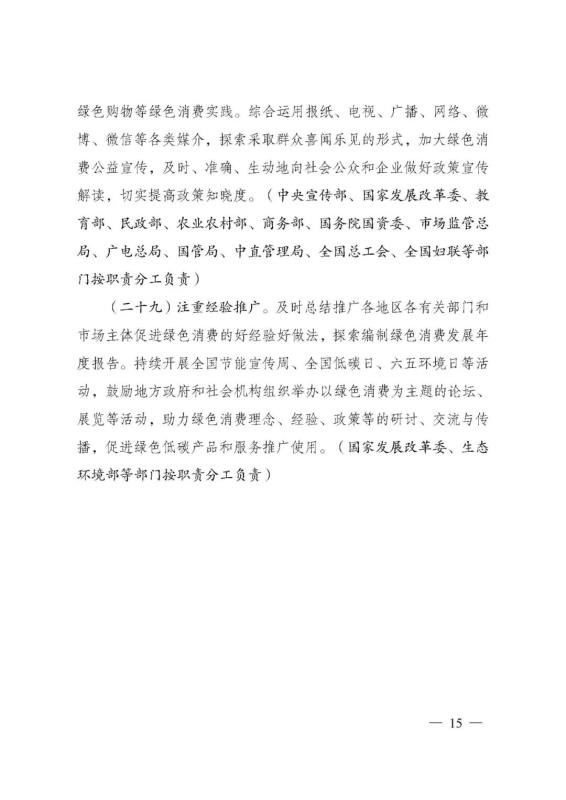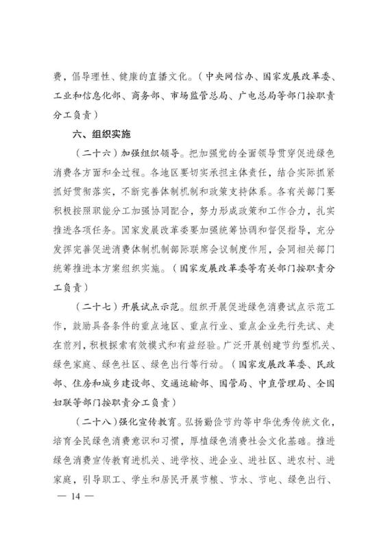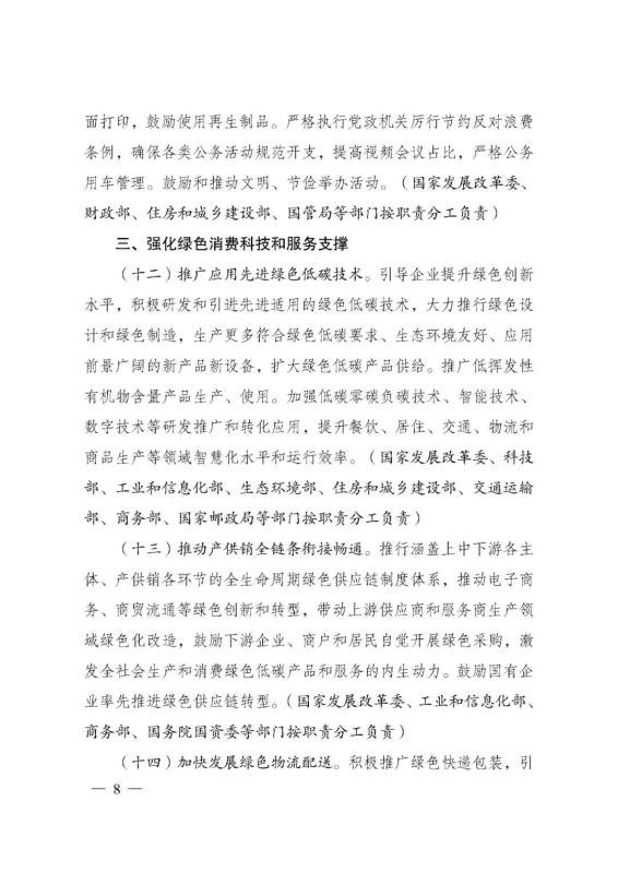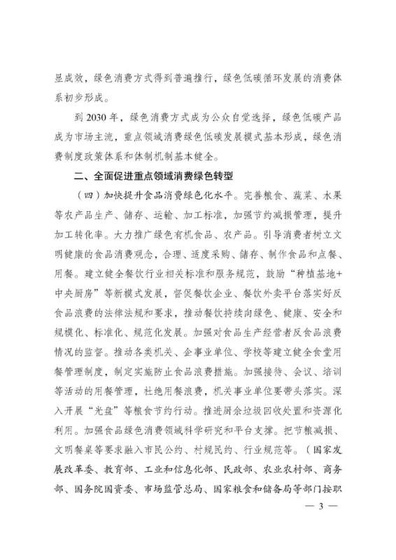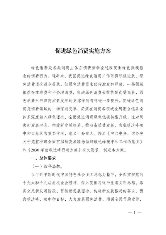 為深入貫徹落實(shí)《中共中央、國務(wù)院關(guān)于完整準(zhǔn)確全面貫徹新發(fā)展理念做好碳達(dá)峰碳中和工作的意見》和《2030年前碳達(dá)峰行動方案》有關(guān)要求,根據(jù)碳達(dá)峰碳中和工作領(lǐng)導(dǎo)小組部署安排,國家發(fā)展改革委、工業(yè)和信息化部、住房和城鄉(xiāng)建設(shè)部、商務(wù)部、市場監(jiān)管總局、國管局、中直管理局會同有關(guān)部門研究制定了《促進(jìn)綠色消費(fèi)實(shí)施方案》?,F(xiàn)印發(fā)給你們,請結(jié)合實(shí)際,認(rèn)真抓好貫徹落實(shí)。