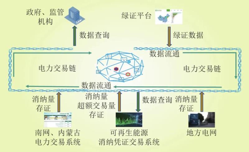 設(shè)計(jì)基于區(qū)塊鏈的可再生能源消納憑證交易系統(tǒng),能夠?yàn)槟茉串a(chǎn)品建立精確可靠的身份信息,從而可以降低交易中產(chǎn)品和企業(yè)的征信成本。區(qū)塊鏈的防篡改特性,可實(shí)現(xiàn)可再生能源消納量記賬共識(shí)互信,賬目真實(shí)、可信、不可抵賴,特別對(duì)于地方電網(wǎng)、增量配網(wǎng),電量信息無法采集,通過區(qū)塊鏈實(shí)現(xiàn)數(shù)據(jù)確權(quán);區(qū)塊鏈的可追溯特性,可實(shí)現(xiàn)可再生能源消納電量全生命周期溯源記錄,一方面增強(qiáng)存證的可信度,另一方面可有效防止超額消納量多次交易套利現(xiàn)象發(fā)生;區(qū)塊鏈的共享特性,可實(shí)現(xiàn)內(nèi)外部多個(gè)系統(tǒng)間數(shù)據(jù)可靠高效交互,包括國網(wǎng)、南網(wǎng)、蒙西電力交易平臺(tái)與權(quán)重系統(tǒng),綠證平臺(tái)與權(quán)重系統(tǒng)等;區(qū)塊鏈的透明性特性,可高效支撐有關(guān)政府主管部門、監(jiān)管機(jī)構(gòu)動(dòng)態(tài)監(jiān)測監(jiān)管可再生能源消納與交易開展情況。