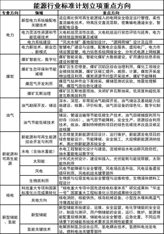 附件:能源行業(yè)標準計劃立項重點方向