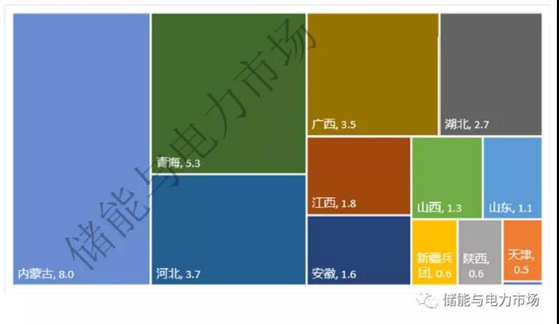 其中內(nèi)蒙古因儲(chǔ)能配置比例高達(dá)新能源裝機(jī)的30%,使其合計(jì)新增儲(chǔ)能達(dá)到8GW。