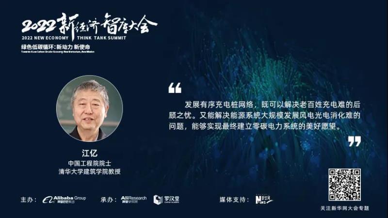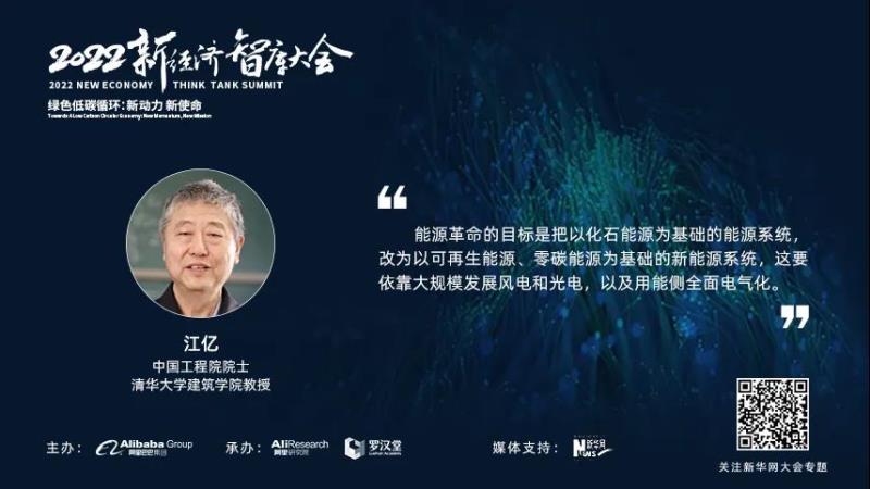 江億當天參加由阿里巴巴集團舉辦的“2022新經(jīng)濟智庫大會”,并作了“構(gòu)建新能源泛在充電新網(wǎng)絡(luò)”主題分享。他表示,能源革命的目標是把以化石能源為基礎(chǔ)的能源系統(tǒng),改為以可再生能源、零碳能源為基礎(chǔ)的新能源系統(tǒng),這要依靠大規(guī)模發(fā)展風電和光電,以及用能側(cè)全面電氣化。