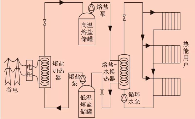 圖3 熔鹽儲能供暖系統(tǒng)原理