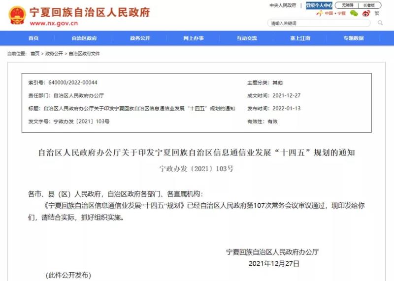 近日,寧夏回族自治區(qū)人民政府辦公廳印發(fā)《寧夏回族自治區(qū)信息通信業(yè)發(fā)展“十四五”規(guī)劃》(以下簡稱《規(guī)劃》),明確了“十四五”時期推動信息通信業(yè)發(fā)展的指導(dǎo)思想、基本原則、發(fā)展目標(biāo)、重點任務(wù)和保障措施。