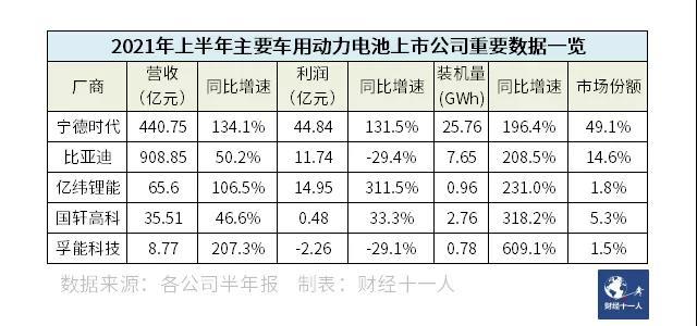 過去六氟磷酸鋰在整個(gè)鋰電池的原料成本中占比不到3%,而今年已經(jīng)超過10%。以銷售六氟磷酸鋰為主要業(yè)務(wù)的多佛多(SZ.002407)為例,2021年上半年業(yè)績報(bào)告顯示,在營收同比增長67.68%的前提下,利潤同比增幅高達(dá)1859.97%。