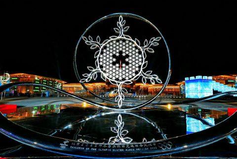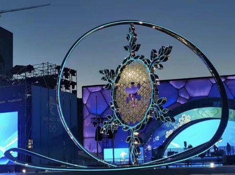 水立方(冰立方)場館旁的北京賽區(qū)火炬臺