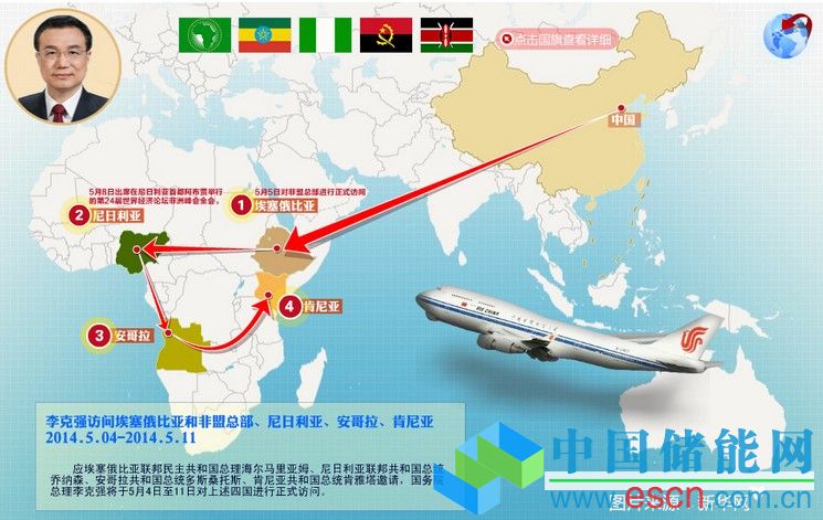 中國儲能網(wǎng)訊:國務(wù)院總理李克強結(jié)束了為時一周的對非訪問乘專機回到北京。在非盟總部的演講中李克強明確提出,2020年中非貿(mào)易規(guī)模要達到4000億美元左右,中方對非直接投資存量向1000億美元邁進。除貿(mào)易量的要求外,此次李克強出訪期間對于“中國制造”的大力推廣也甚為引人注意,除了赴歐洲時大力“推銷”的高鐵技術(shù)外,此次李克強還為非洲帶去了中國的飛機、高速路、光伏甚至衛(wèi)星技術(shù)。李克強在每個國家都推廣了哪些“中國制造”?下文為你一一介紹(見圖)。
