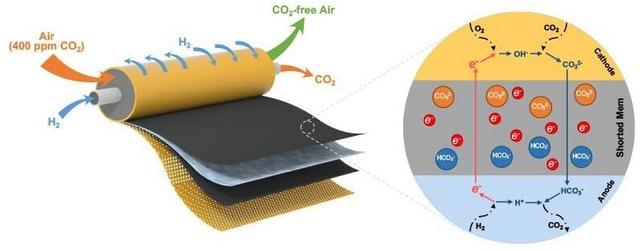 中國儲能網訊:財聯(lián)社(上海,編輯 黃君芝)訊,近期,美國特拉華大學(University of Delaware)的工程師們成功演示了一種方法,不僅可以利用由氫氣驅動的新型電化學系統(tǒng)有效地從空氣中捕獲99%的二氧化碳,還成功提升了氫氧根交換膜(HEM)燃料電池的性能。