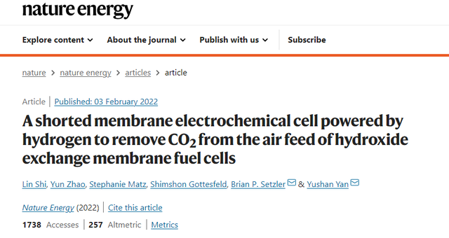 HEM燃料電池是一種經濟且環(huán)保的替代目前使用的傳統(tǒng)酸基燃料電池的方法。但是這種燃料電池有一個缺點,使其無法在現(xiàn)實應用,即它們對空氣中的二氧化碳極其敏感。這一缺陷迅速降低了燃料電池的性能和效率。因此15年來,Yan都在致力于解決這一問題。