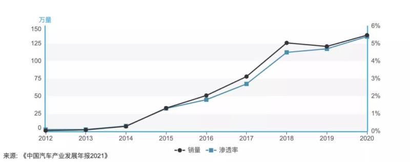 據(jù)工信部2021年中國汽車產(chǎn)業(yè)發(fā)展年報(bào)統(tǒng)計(jì)顯示,我國新能源汽車銷量和市場滲透率呈高速增長趨勢,截至2020年銷量連續(xù)六年位居全國第一[13]。