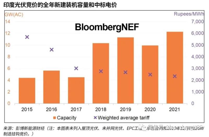 在經(jīng)歷乏善可陳的12個月后,光伏競價規(guī)模在2021年下半年激增。電力需求的復蘇和就過往競價簽署購電協(xié)議(PPA)為新的競價活動掃除了障礙。印度有五個邦舉行了本邦的競價活動,但電價的提升表明這一趨勢或難持續(xù)。
