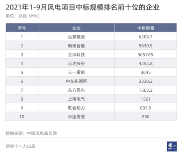 圖2:2021年1-9月風(fēng)電項(xiàng)目中標(biāo)統(tǒng)計(jì)情況