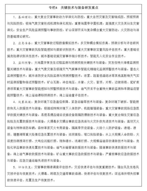 深化應用基礎研究。聚焦災害事故防控基礎問題,強化多學科交叉理論研究。開展重大自然災害科學考察與調查。整合利用中央和地方政府、企業(yè)以及其他優(yōu)勢科技資源,加強自主創(chuàng)新和“卡脖子”技術攻關。實施重大災害事故防治、重大基礎設施防災風險評估等國家科技計劃項目,制定國家重大應急關鍵技術攻關指南,加快主動預防型安全技術研究。