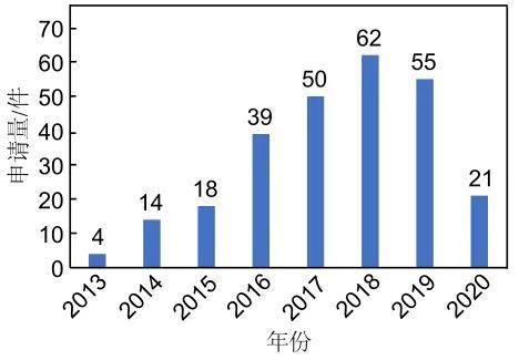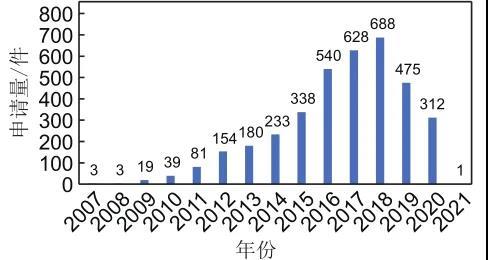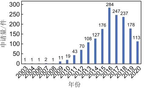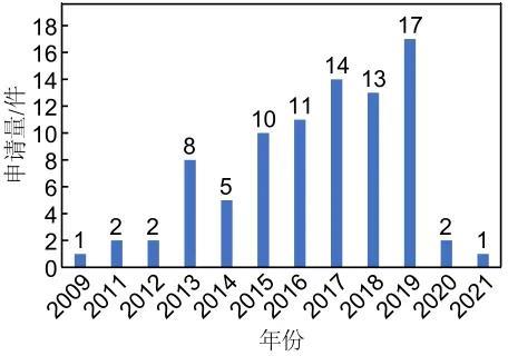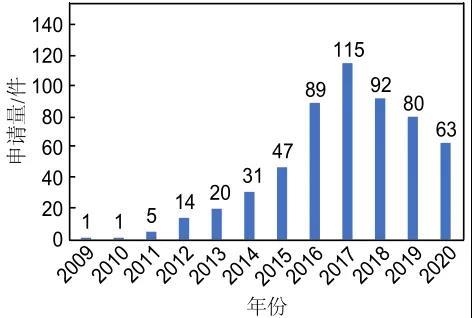 專利申請數(shù)量體現(xiàn)的是知識(shí)產(chǎn)權(quán)制度中專利技術(shù)的確權(quán)與保護(hù),由于技術(shù)的發(fā)展必然伴隨著專利的產(chǎn)生,以專利數(shù)量作為統(tǒng)計(jì)指標(biāo)能夠一定程度上體現(xiàn)石墨烯在儲(chǔ)能領(lǐng)域應(yīng)用的研發(fā)熱點(diǎn)和發(fā)展態(tài)勢。