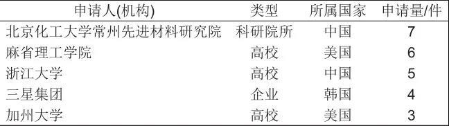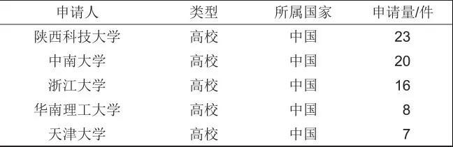 表7 專利申請量排名前5的申請人(機(jī)構(gòu))匯總