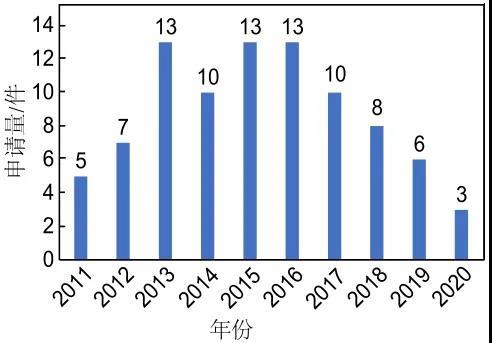 圖13 石墨烯在超級電容器領(lǐng)域應(yīng)用相關(guān)專利申請趨勢