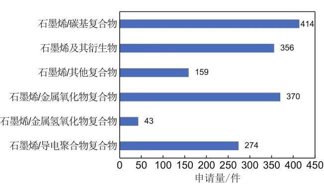 圖10 石墨烯在鋰離子電池各類負(fù)極中應(yīng)用的專利申請概況
