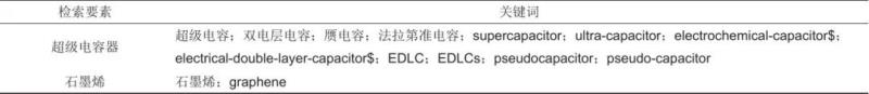 表2 石墨烯應(yīng)用于超級電容器的檢索要素、關(guān)鍵詞及IPC分類號