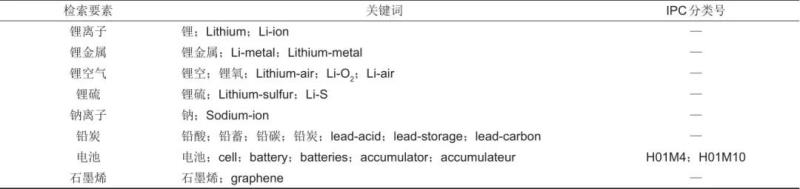 表1 石墨烯應(yīng)用于電池體系的檢索要素、關(guān)鍵詞及IPC分類號