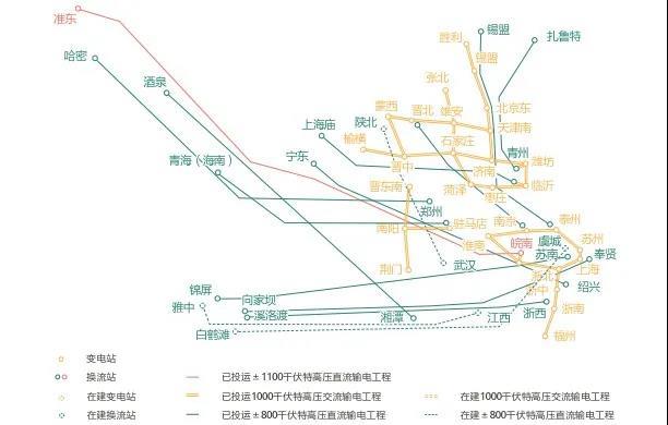其中,國家電網(wǎng)新疆(準(zhǔn)東)—華東(皖南)±1100千伏特高壓直流輸電工程是世界上電壓等級最高、輸送容量最大、輸送距離最遠(yuǎn)、技術(shù)水平最先進(jìn)的特高壓輸電工程,換流容量2400萬千瓦,線路長度3324Km,途經(jīng)新疆、甘肅、寧夏、陜西、河南、安徽6省(區(qū)),工程總投資407億元人民幣。