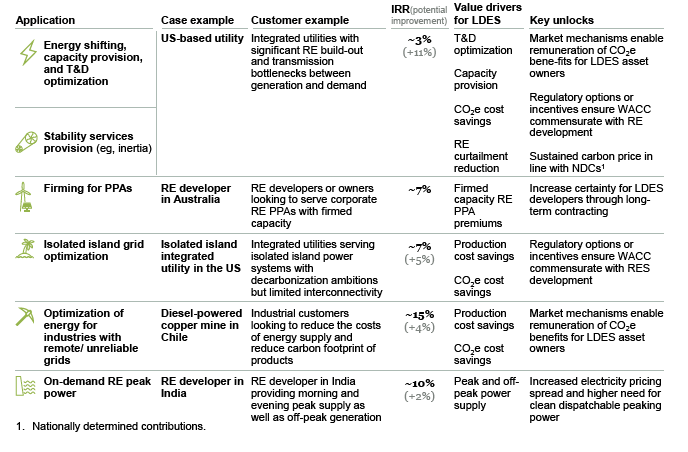 不同的長(zhǎng)時(shí)儲(chǔ)能用例可以使廣泛的客戶受益,包括公用事業(yè)公司、獨(dú)立電力生產(chǎn)商、輸配電系統(tǒng)運(yùn)營(yíng)商、具有環(huán)境、社會(huì)和企業(yè)治理承諾的企業(yè)、對(duì)正常運(yùn)行時(shí)間有高要求的行業(yè)、孤立的島嶼社區(qū)和有后備需求的公共和醫(yī)療保健服務(wù)。雖然共同的主題是需要電力彈性,但每個(gè)用例都是由當(dāng)?shù)胤ㄒ?guī)驅(qū)動(dòng)的。例如,具有電網(wǎng)系統(tǒng)運(yùn)行功能的公用事業(yè)公司可能會(huì)通過(guò)長(zhǎng)時(shí)儲(chǔ)能應(yīng)用程序來(lái)滿足能源轉(zhuǎn)移、容量提供、輸配電優(yōu)化和穩(wěn)定服務(wù)提供的需求。而企業(yè)參與者(例如可再生能源開(kāi)發(fā)商或所有者或工業(yè)客戶)更有可能對(duì)長(zhǎng)時(shí)儲(chǔ)能確定電力采購(gòu)協(xié)議(PPA)或優(yōu)化能源采購(gòu)以在偏遠(yuǎn)或不可靠電網(wǎng)中承購(gòu)的能力更感興趣。