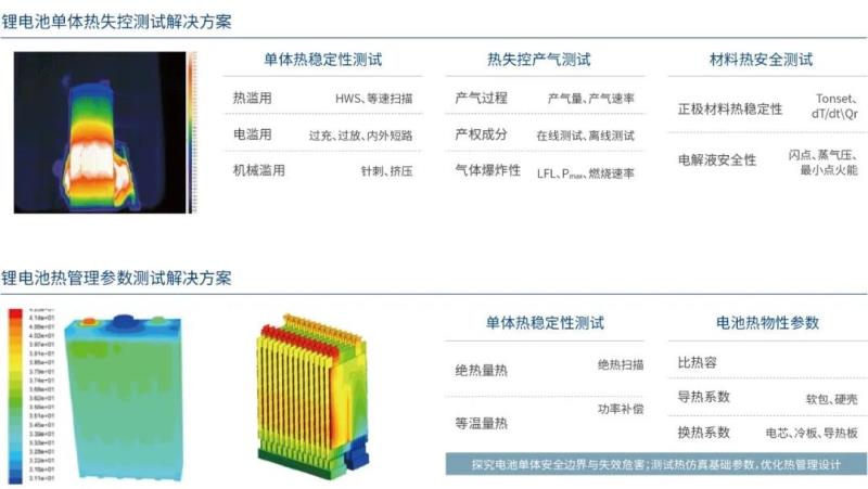 關(guān)鍵儀器包括:電池等溫量熱儀、3D熱物性分析儀、大型電池絕熱量熱儀及小型電池絕熱量熱儀等。