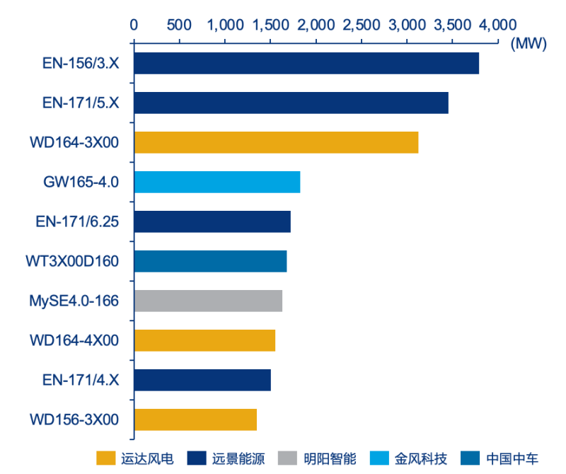 運(yùn)達(dá)風(fēng)電在國營和民營開發(fā)商的訂單獲取中均表現(xiàn)突出,獲簽訂單量年度排名第一。遠(yuǎn)景能源憑借與國企開發(fā)商的密切合作,訂單量表現(xiàn)依舊強(qiáng)勁,其EN-156/3.X和EN-171/5.X是2021年已確定風(fēng)機(jī)訂單量中最受歡迎的兩款機(jī)型。