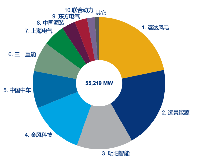 中國已確認(rèn)風(fēng)機(jī)訂單量排名概覽,2021年