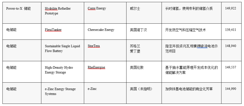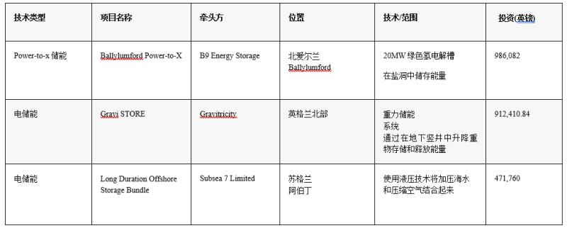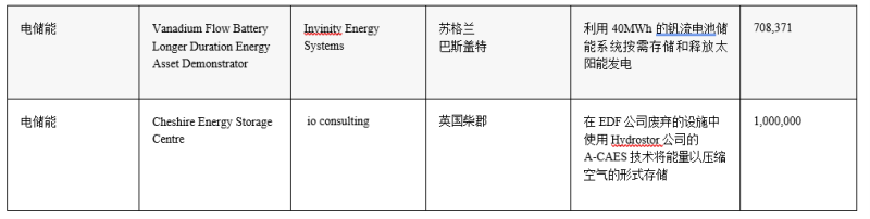英國商業(yè)、能源和工業(yè)戰(zhàn)略部(BEIS)于2021年6月通過國家凈零創(chuàng)新投資組合(NZIP)提供了總額為6800萬英鎊的競爭性融資。共有24個長時儲能示范項目獲得資助。