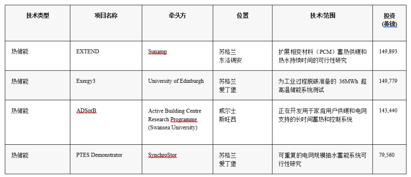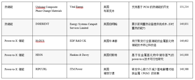 熱儲能技術(shù)符合這種條件,但沒有一個項目獲得第一輪資金支持。第一輪獲得資金支持的每個長時儲能項目將獲得471760英鎊至100萬英鎊不等資助。