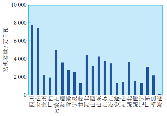 圖 5 我國重點地區(qū)非化石能源發(fā)電裝機(jī)容量分布