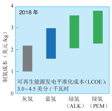 圖 4 不同途徑的制氫成本 資料來源:IEA,2019