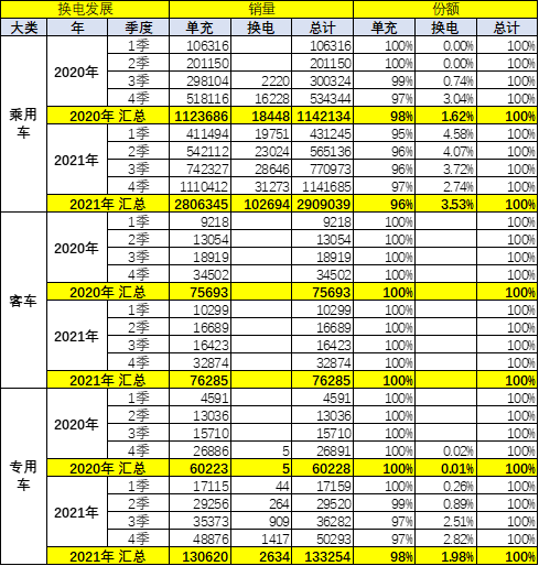 目前數(shù)據(jù)可能相對(duì)來說有所遺漏,但2021年開始,這個(gè)數(shù)據(jù)應(yīng)該相對(duì)就是屬于比較準(zhǔn)確的,原因在于主力車型一般都會(huì)加速推進(jìn)產(chǎn)品的升級(jí),電動(dòng)車車輛型號(hào)很少生產(chǎn)兩年以上的情況,因此,大家可以看到我們2021年的換電車型形成了較快增長(zhǎng)的良好態(tài)勢(shì)。