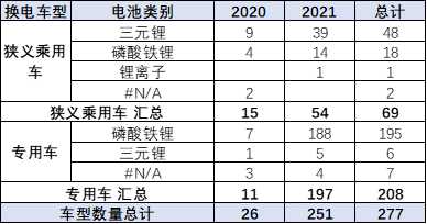 換電車型的乘用車的產(chǎn)品檔次較高,主力車型是三元電池的,低端的磷酸鐵鋰電池較少。